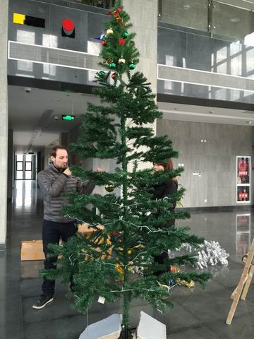 众所周知,圣诞节在西方是最美的家庭节日和最重要的基督教节日之一。为了迎接这一特殊节日的到来,今天William威廉英国的部分同学与留学生Alex一起在中德工程师楼E楼大厅亲自组装并装扮了美丽的圣诞树。下面请欣赏我们的圣诞作吧