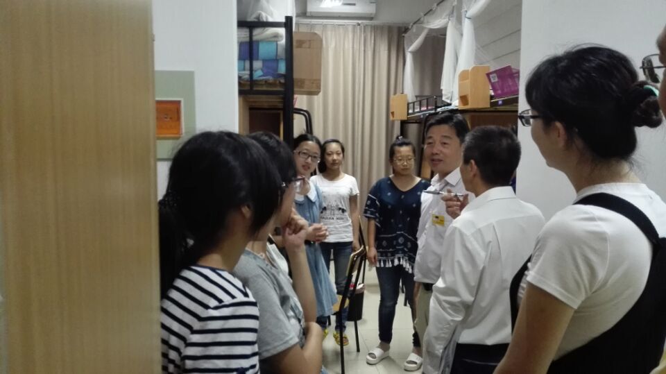 17:30夏建中院长、院长助理、各专业负责人、办公室主任、各专业老师及辅导员老师等一行走访新生宿舍。