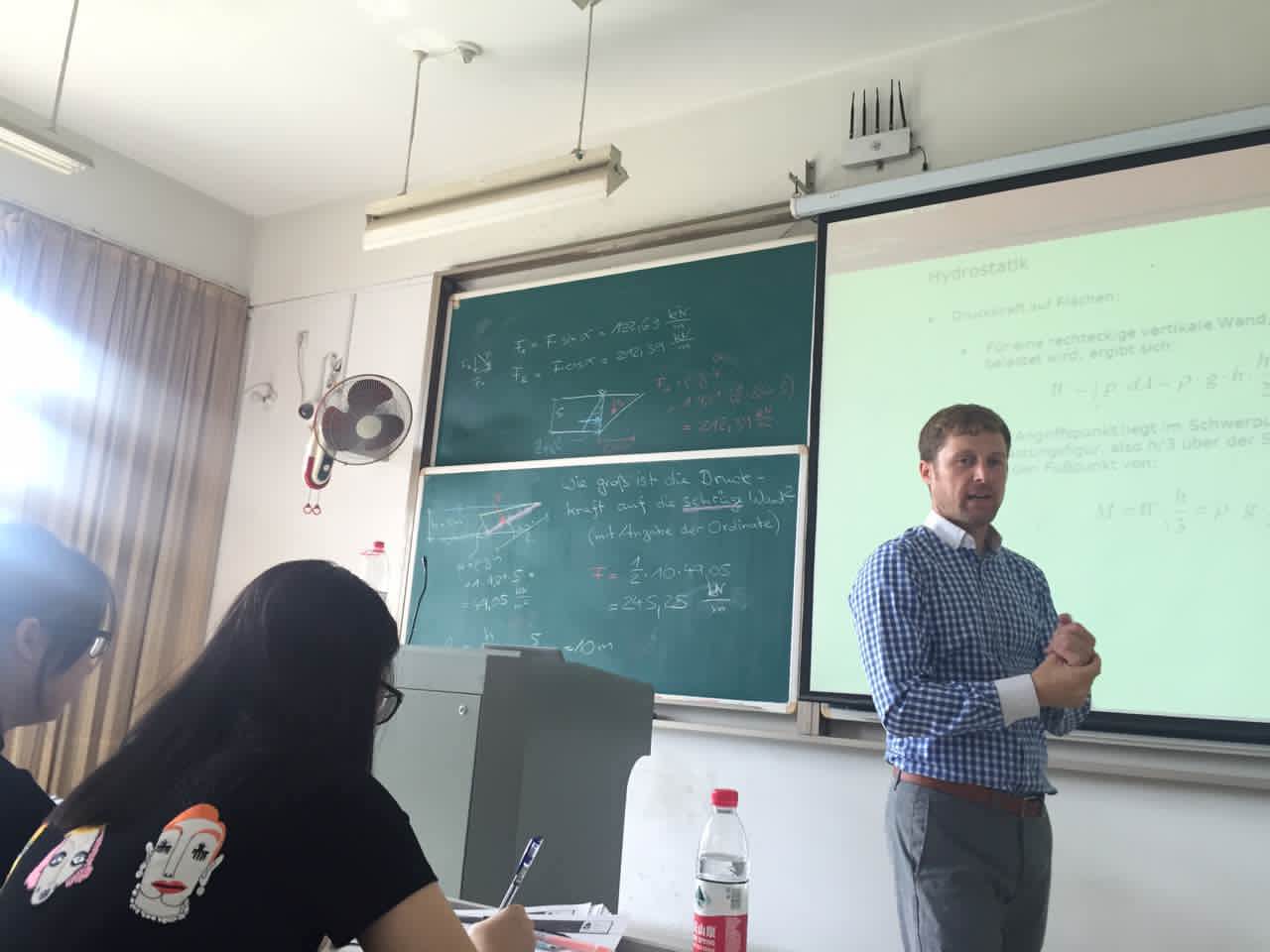 2016年9月19日起,来自德国吕贝克应用科技大学的玛利欧·奥特(Mario Oertel)教授前来我院为14届土木工程的同学开展为期一周的流体力学集中授课。