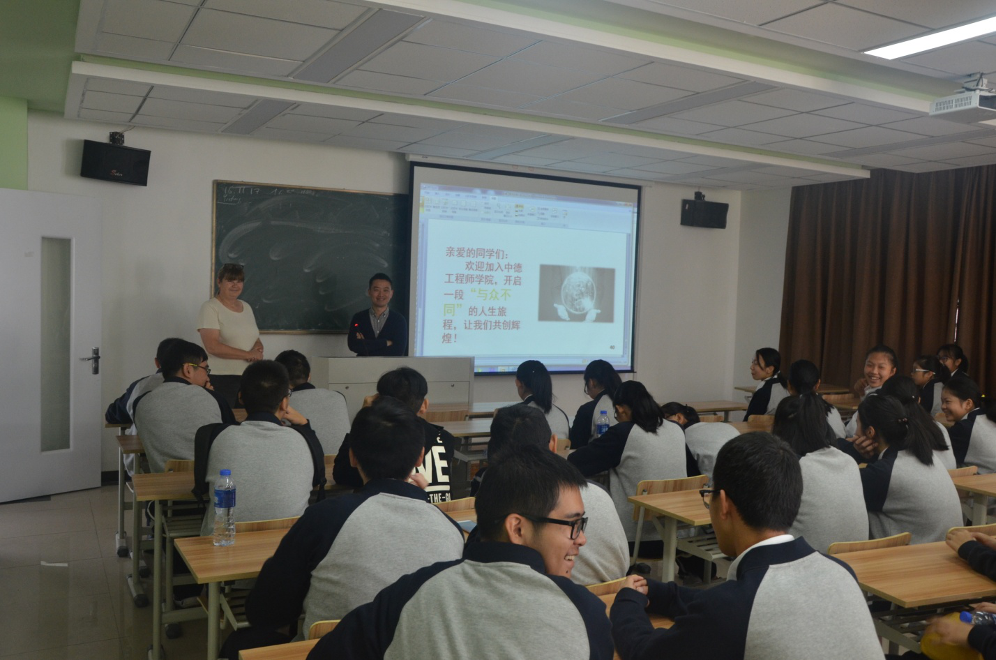 学生们在学院老师的带领下参观了学院小和山校区的教学设备设施。之后,由学院直属党支部书记李成炜老师详细介绍了学院的相关情况,展示了德国先进的教育理念、教学资源,同时,也展示了学院对学生大学四年完善的关爱体系,帮助学生完成从中学教育到大学教育、从中国教育方式到德国教育方式、从国内学习生活到德国学习生活、从学校生活到社会生活四个转变。同学们随后提了关于德国的问题,李成炜书记一一作了解答,西海岸应用科技大学常驻William威廉英国教师Anja Schneider女士也为学生们简短介绍了一些德国文化,引起了学生们强烈的兴趣。