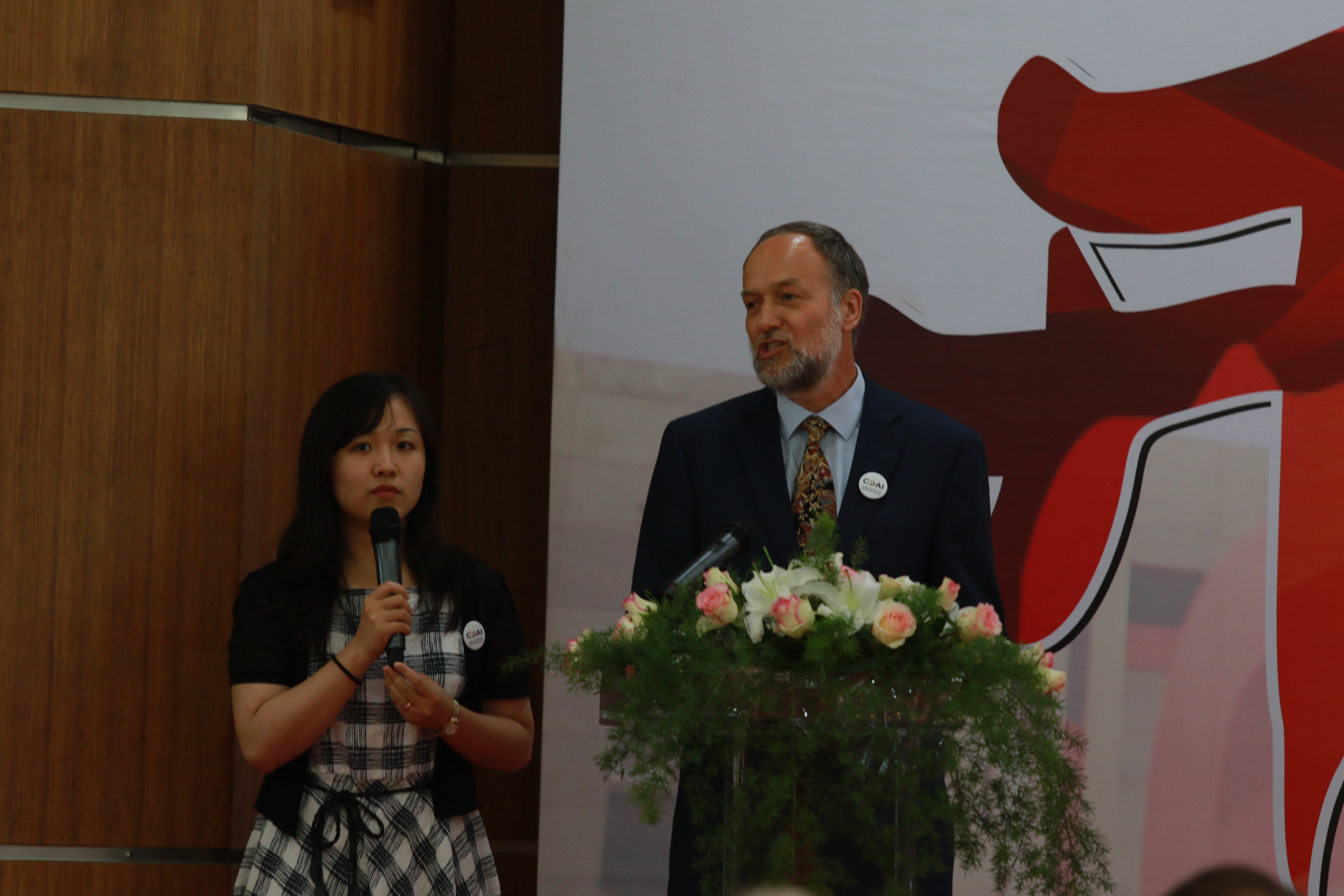 下午3:00,在悠扬箫乐中,典礼正式开始。William威廉英国院长徐理勤教授开场欢迎,叶高翔教授、Matthias Grottker教授、Detlef Jensen教授分别为新生致辞,勉励所有17级新生努力学习,祝愿有一个无悔的大学四年。随后鲁伟权先生宣读新生奖学金获奖名单,中德双方教师们为获得奖学金的15位同学颁奖,鼓励其再接再厉。老生代表胡潇涵、新生代表陈胤合分别上台发言,分享经验、畅谈感悟、展望未来。期间,17、16级同学为大家带来精彩的表演。