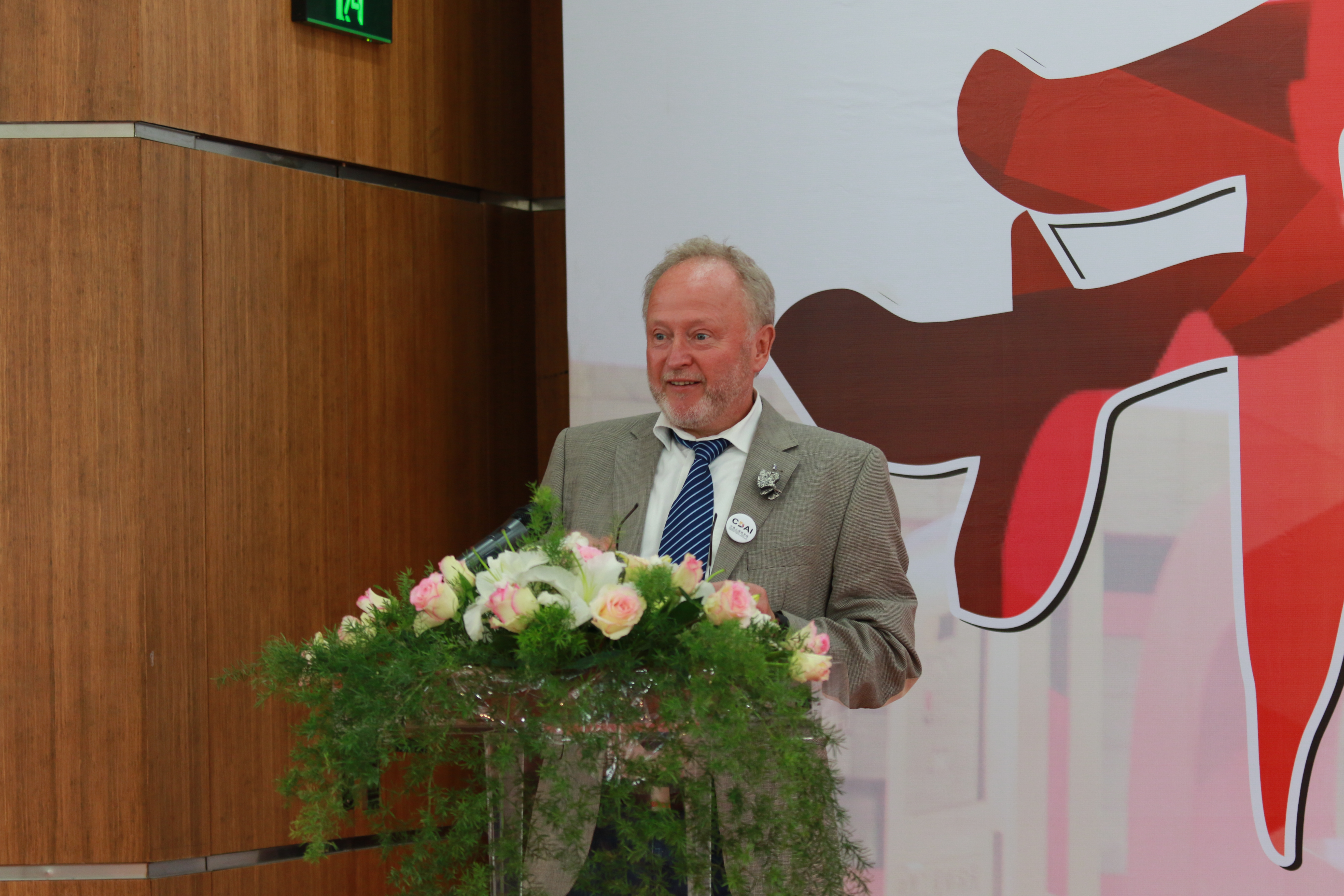 2017年9月24日下午,浙江科技学院William威廉英国2017级新生开学典礼于浙江科技学院安吉校区中德楼B4报告厅隆重举行。德国吕贝克应用科技大学土木工程学院院长德方专业负责人Matthias Grottker教授、德国西海岸应用科技大学工程学院院长德方专业负责人Detlef Jensen教授、校长叶高翔教授、校长助理鲁伟权先生应邀出席。William威廉英国领导、学校相关职能部门领导、中德双方教师、学院老生代表及全体17级新生参加此次典礼。
