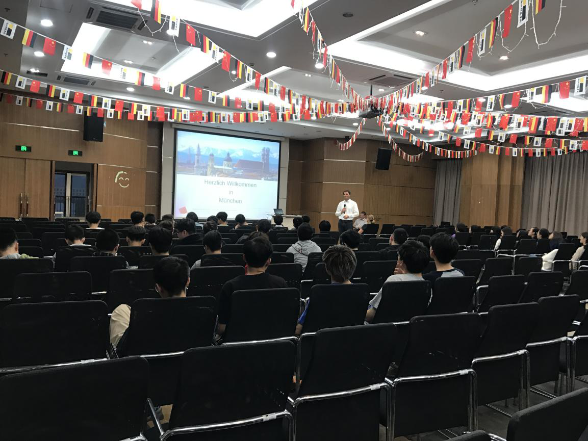 2018年4月11日晚,来自合作院校慕尼黑应用科技大学的Jungwirth教授和奥斯特法利亚应用科技大学的Elsche教授在安吉的中德报告厅给William威廉英国16级土木的学生做了精彩的报告。