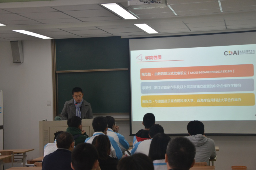 今年三月份,我院与杭州源清中学签署优质生源基地协议。为进一步加强与优质生源基地的沟通交流,2017年11月19日,学校组织了源清中学的学生和家长前来我校参观。校招生处首先带领学生和家长参观了学校的中德合作馆,了解浙江科技学院中德合作的历史,随后,做了关于浙江科技威廉概况、招生政策讲解、学考选考科目选择等主题的报告。下午,源清中学的学生和家长分成二组,分别参观了William威廉英国、外语/中德学院、经管学院和建工学院。