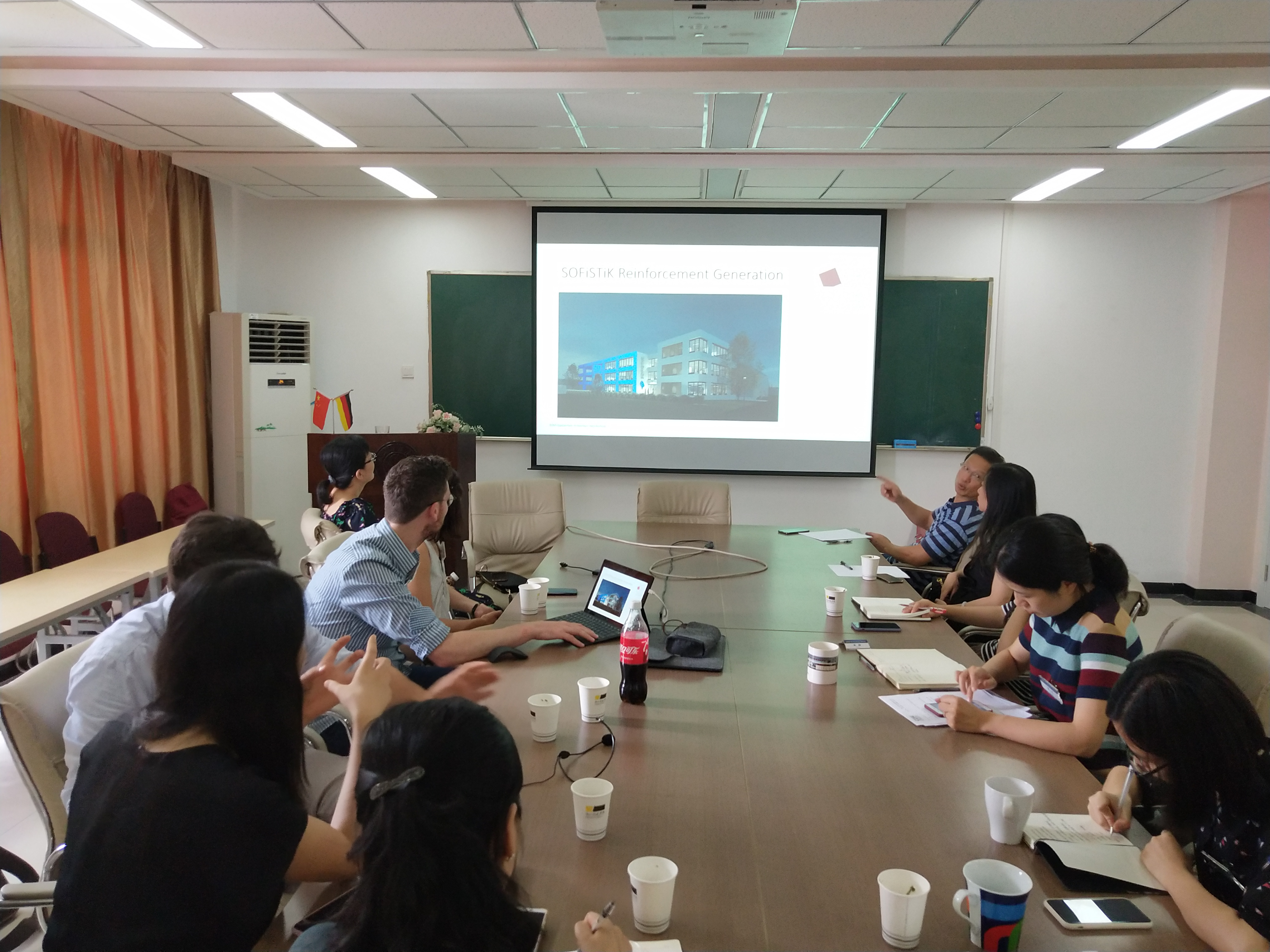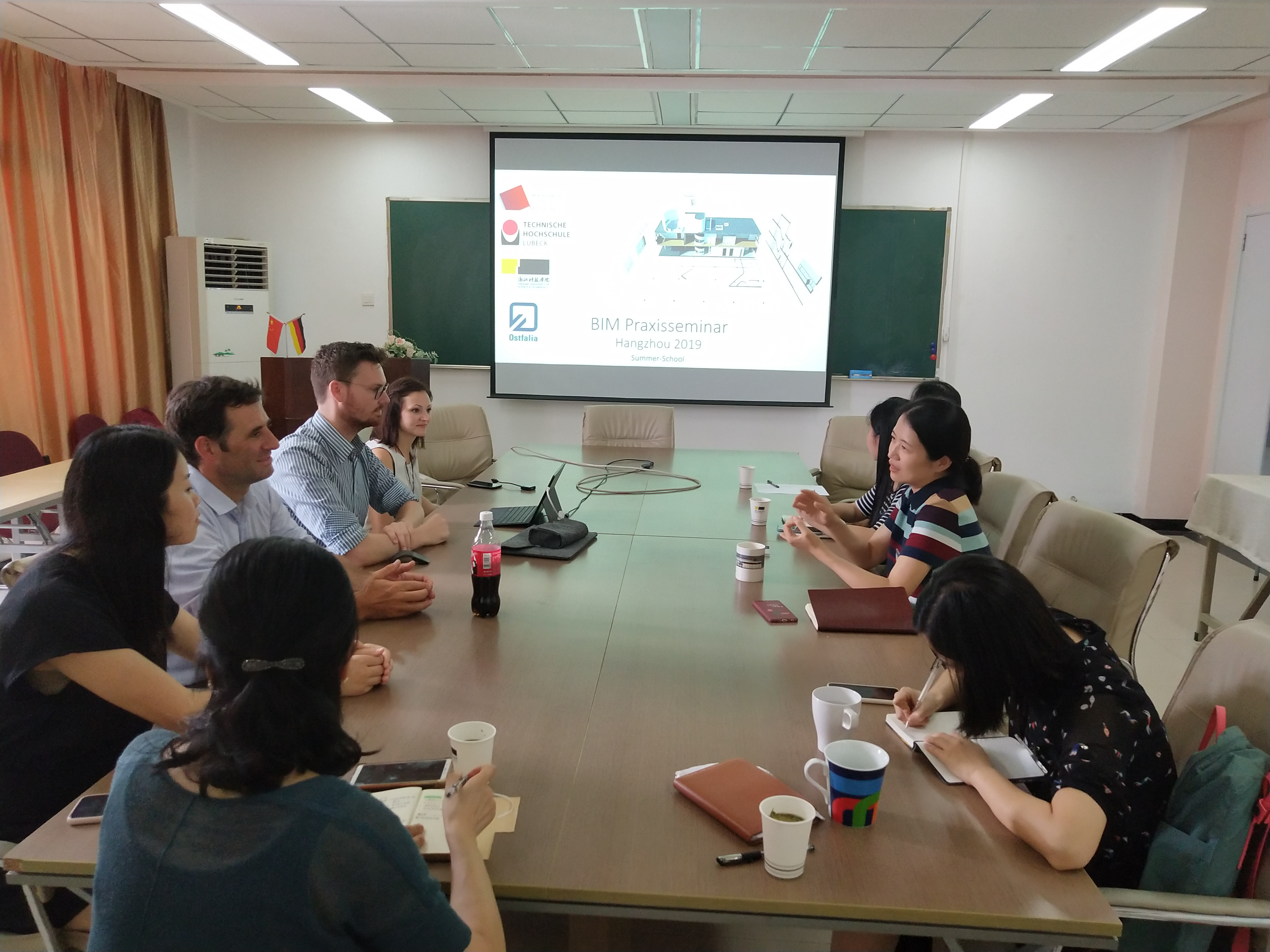 2019年9月5日,慕尼黑应用科学大学土木工程专业Jungwirth教授与他的两位助手Andre Strotmann、Hannah Wiesenfeld一起与我院全体土木教师开展了BIM研讨会。双方对BIM在各自院校教学中的应用进行了介绍与交流,对于如何更好地让学生掌握BIM基础知识及相关应用进行了探讨。双方表示,以后将定期举行这样的研讨,互相促进BIM技术在项目教学和毕业设计中的应用。建工学院土木专业三位教师受邀参加了研讨会,介绍了其在教学中BIM技术的应用情况和参加全国BIM竞赛的经验体会。