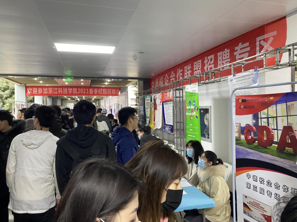 学院2021届毕业生悉数参加了本次招聘会,凭借自身中德联合培养的学习背景,与参展企业积极交流、投放简历。另外,招聘会还吸引了不少海外留学生前来咨询,咨询关于在中国的实习工作机会,一些德资企业纷纷表示热烈欢迎。