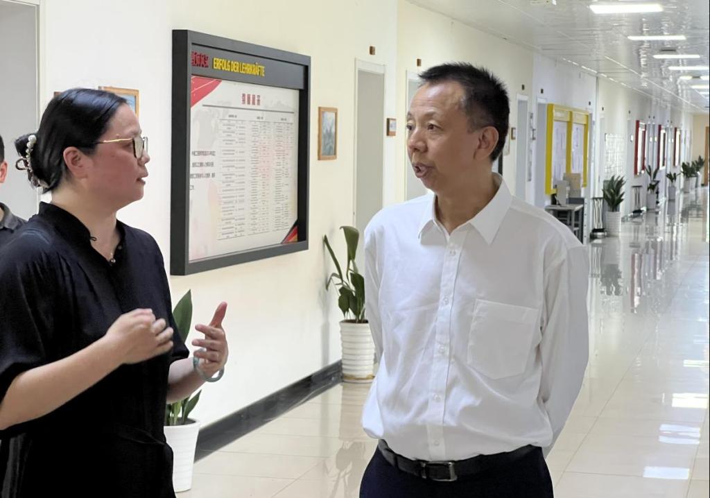 5月29日下午,教育部国际司一级巡视员陶洪建一行来学院参观调研,学院直属党支部书记范佳静就学院的内部治理体系、人才培养模式和成效做了简单介绍。陶司长就学院德国应用型人才培养特色给予了肯定,也希望学院能进一步加强产学研一体化工程地推进,将人才培养真正做到扎根于地方产业。