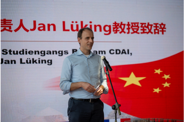 薛文院长致辞中表示,开学以来同学们朝气蓬勃、乐观开朗给人留下极其深刻的印象,她鼓励大家认清现实、用好资源、做好规划,走向更宽广的世界。德方专业负责人Jan Lüking教授希望大家对待专业学习保持好奇,期待在德国与大家相见。老生代表助班姚养正结合自身经历建议同学们尽快调整心态、做好个人规划、学好专业知识。新生夏雪谈到入校以来对土木工程和德语多了一份理性的思考,她认为要从学习上和生活上尽快适应环境并不懈努力。留学生代表Nowak Franka以自身从德国来中国交换为例,期待同学们能争取前往德国体验不同的文化。
