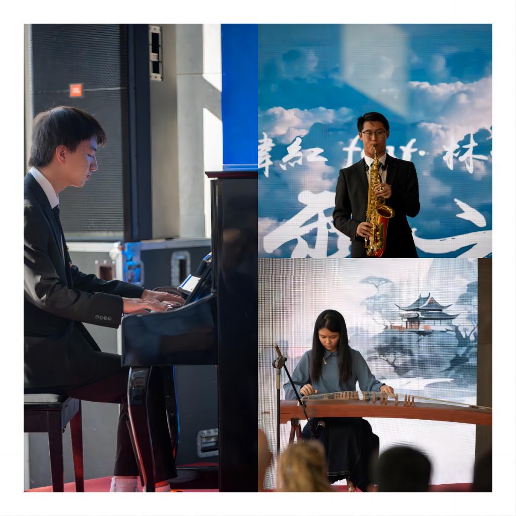 随后新生们带来了精彩的才艺展示。刘念灵巧的双手在钢琴上演绎动人的旋律,王旷岳萨克斯独奏唯美浪漫,吕响羿古筝演奏古韵悠扬情切切,白俊成竹笛带来经典的《茉莉花》,还有新生合唱团演绎德语版《雪绒花》合唱。最后典礼展示了全体新生的未来展望短片,短片中大家朝气蓬勃、积极向上。