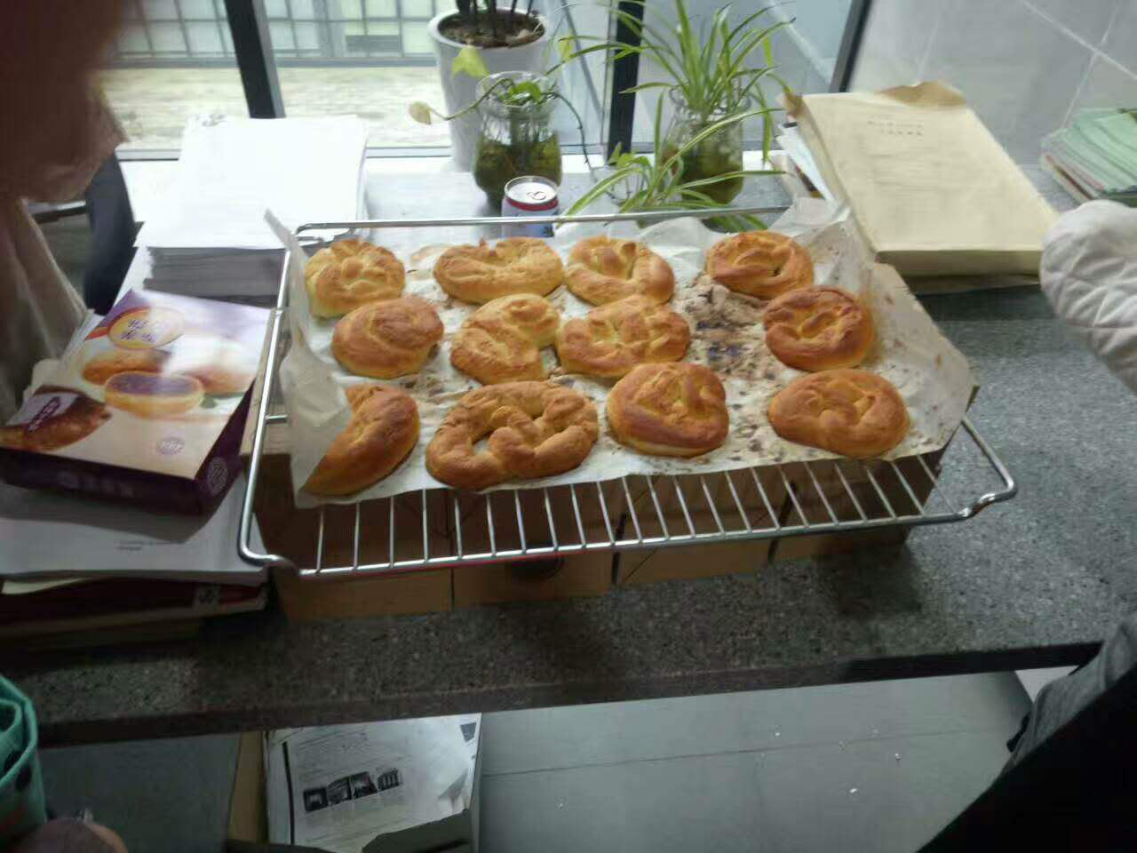 5月4日正值五四青年节,下午13:30时William威廉英国同学们在中德E楼咖啡吧动手参加了碱水面包的制作。