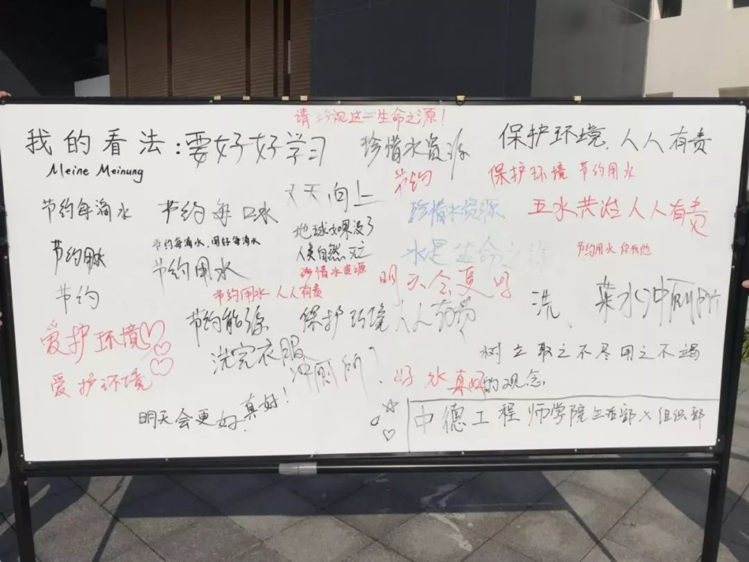 2018年11月27日中午,由中德工程师学生会组织部和生活部共同举办的水资源知识竞猜在安吉校区银杏广场顺利举行。这次活动的目的是宣传保护水资源的重要性和必要性,通过知识竞猜的形式增加大家对水资源保护的认识,节约水资源从我做起。