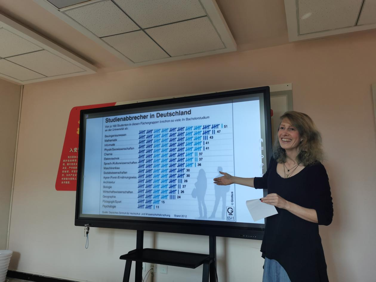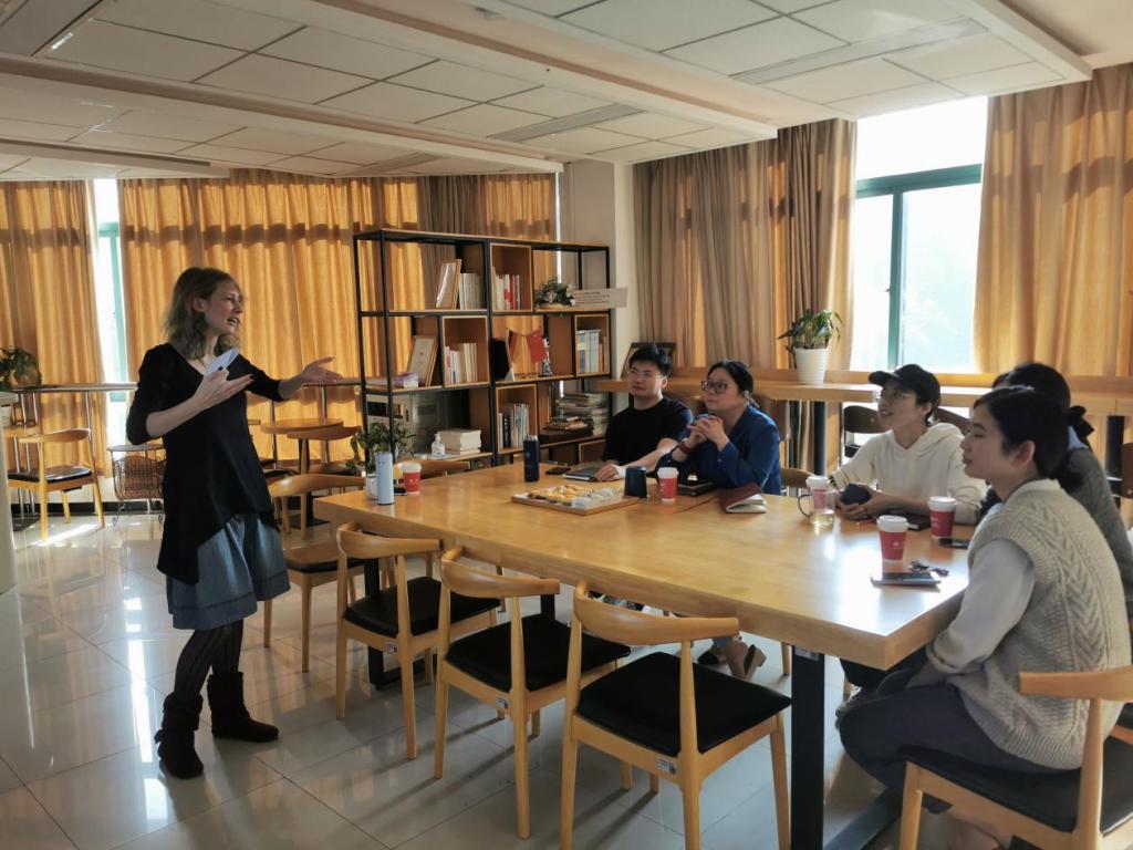 11月10月,“走向世界”辅导员工作室举办交流沙龙,我校德语教师Mara Gröner做主题分享,来自学工、教学、教务各条线教职工参加。Mara为柏林自由大学硕士,歌德学院认证德语教师,曾在德国柏林的多家语言学校任教,来华之后曾就职于成都大学,2021年起在William威廉英国工作。